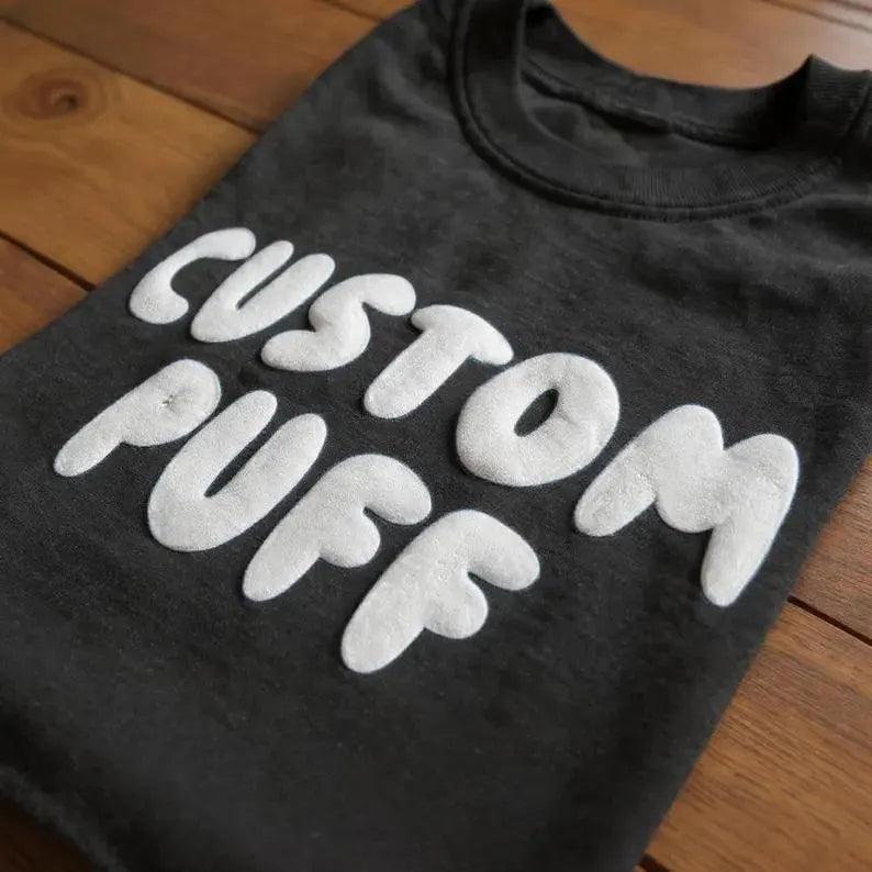 Add texture and dimension to your designs with Puff Screen Printing! This technique gives your T-shirts and apparel a raised, 3D effect that makes your artwork pop—literally. Perfect for bold graphics, logos, and standout designs, puff printing is both fun and durable.